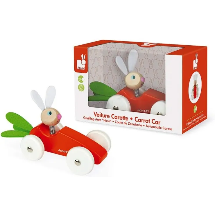 Janod Wooden Vehicle Toy | Orange & Green Push-Along Car for Toddlers UK