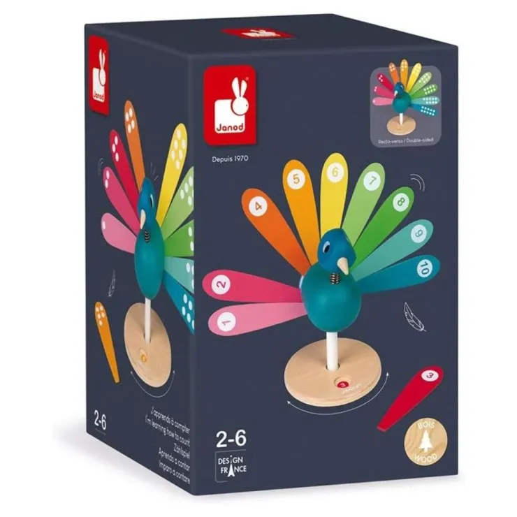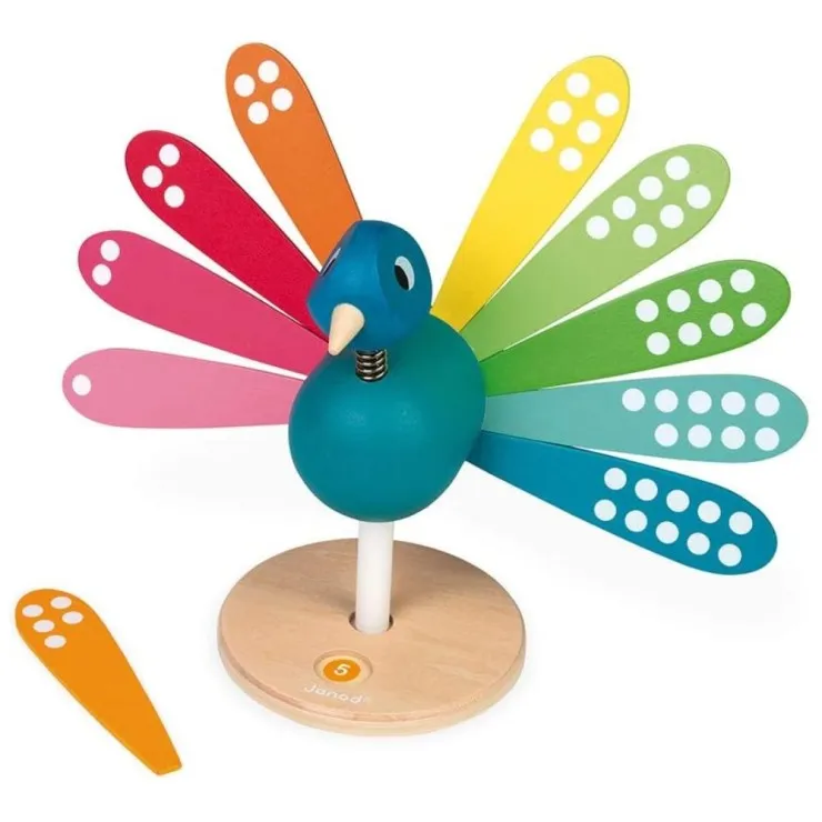 Janod Peacock Wooden Toy – Early Years Numbers & Colours UK J08040