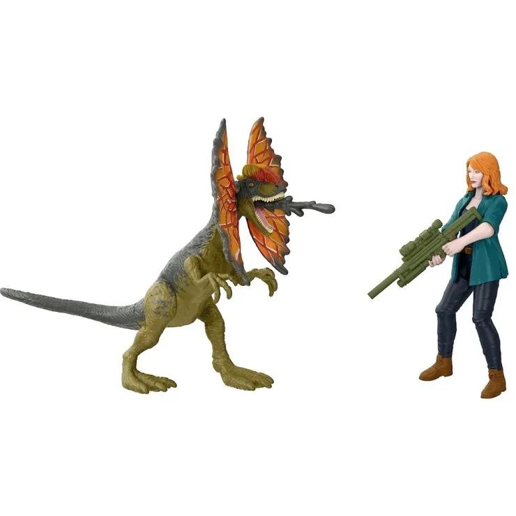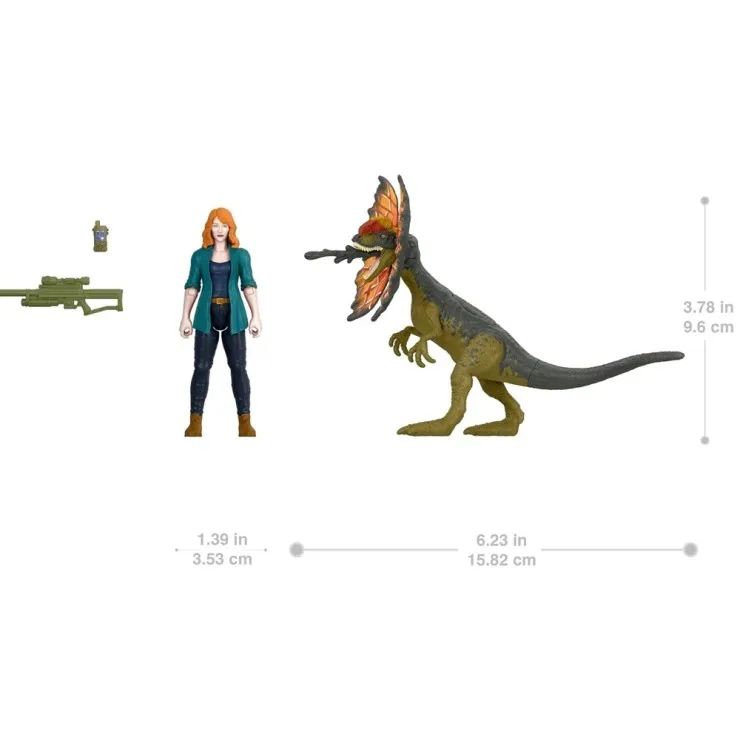 Step into the world of dinosaurs with Claire Dearing, the brave Dinosaur Protection Group leader, and a ferocious Dilophosaurus, recreated with true-to-movie details. Both figures are designed in 3.75-inch scale, ensuring accurate proportions for action-packed storytelling. Claire stands approximately 3.8 inches tall, while the Dilophosaurus measures 4.2 inches tall and 6.2 inches long, making them the perfect pair for re-enacting iconic Jurassic World Dominion scenes.