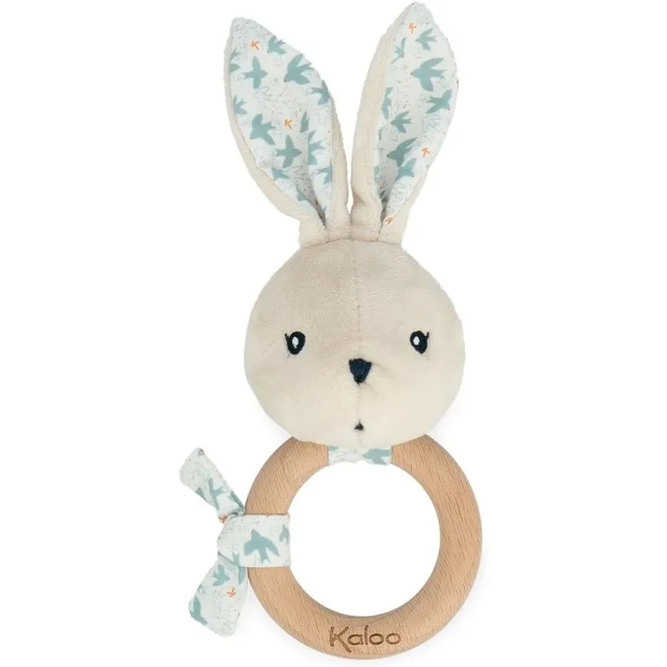 Kaloo K216001 Plush Rabbit Rattle – Baby Teether Toy with Wooden Ring & Sound
