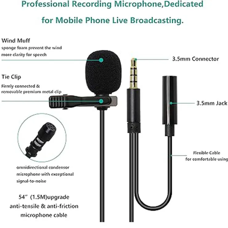 The mini wired condenser mic embedded in this lapel microphone guarantees clear and crisp audio, enhancing the quality of your recordings whether you're conducting interviews, giving presentations, or capturing vlogs.