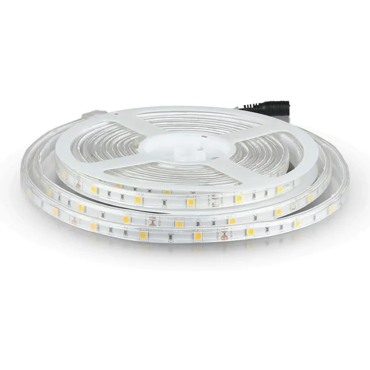 Illuminate outdoor areas efficiently with our 5m LED strip light, consuming only 4.8W per meter. Its 4000K natural light enhances visibility and ambiance while saving on energy costs. IP65 rated for outdoor durability, this strip light offers easy installation and customizable length options, making it ideal for gardens, pathways, and architectural features.
