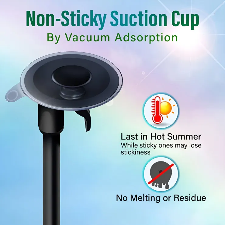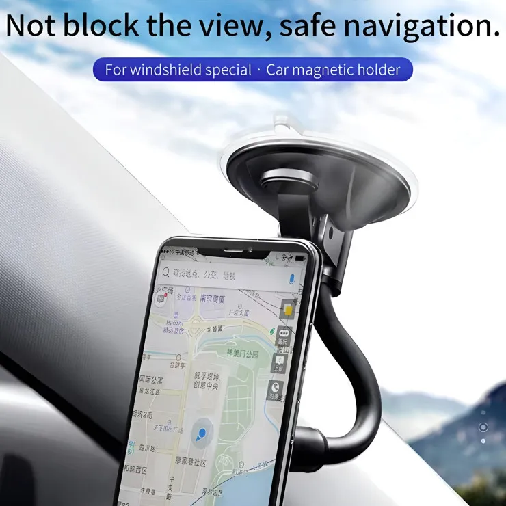 It attaches with a high-adhesion suction cup, suitable for dashboards and windshields.