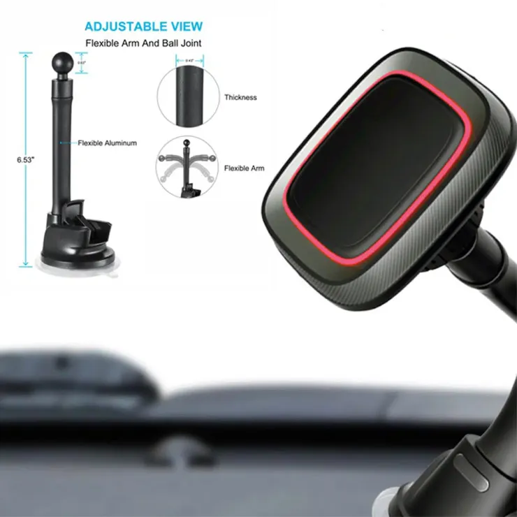 The Windshield & Dashboard Car Phone Mount includes a thickened silicone sucker for a strong, stable grip. This silicone material adheres firmly to dashboards, windshields, and other flat surfaces, ensuring your phone stays securely in position.