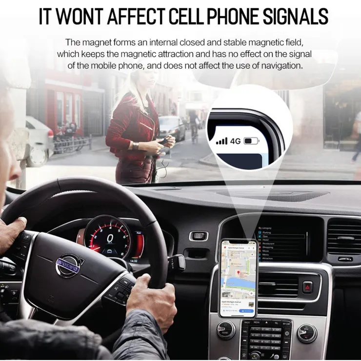 Strong Magnetic Hold: Our Magnetic Car Phone Holder features powerful N52 neodymium magnets that securely grip your device, even through bumpy rides and sharp turns. You can trust it to keep your phone in place, no matter the conditions.