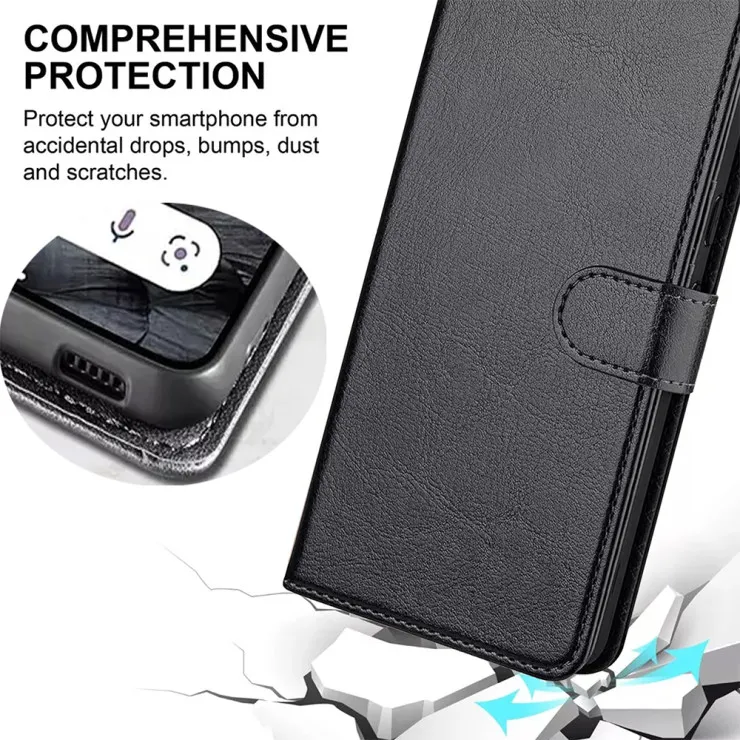 Elevate your Google Pixel 9 with the Black Magnetic Flip Leather Wallet Case. Combining elegance and functionality, this case features a strong magnetic closure, durable leather construction, and integrated, ensuring your phone and essentials are always safe and stylish.
