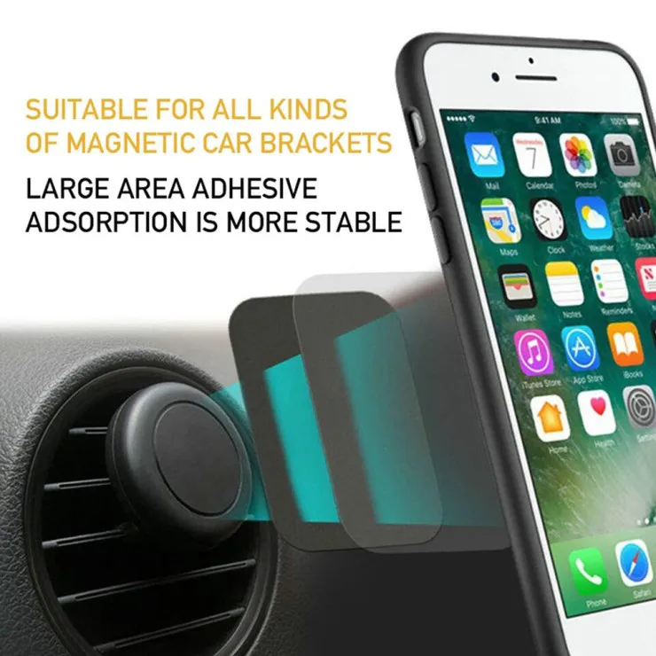 Each plate features a strong adhesive backing that firmly sticks to the back of your phone or inside your case, providing a sturdy base for magnetic mounting. The adhesive is designed for a long-lasting hold that won't weaken over time.