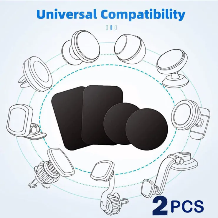 Regardless of the brand or model of your mobile phone, these metal plates are universally compatible. They effortlessly work with any magnetic mount, making them a versatile choice for any user.
