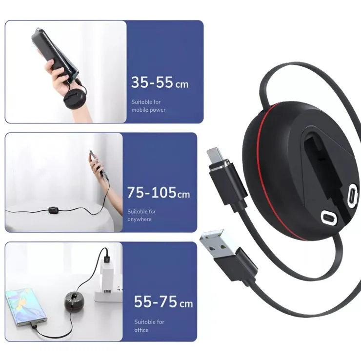 Our 3-IN-1 magnetic cable combines fast 3A charging with 480-Mbps data transfer for optimal performance. The retractable design ensures easy storage and eliminates cable clutter, making it perfect for various devices.