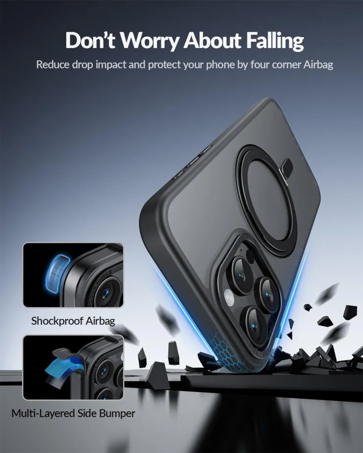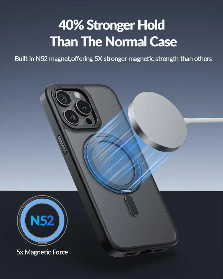 Equipped with a 360° rotatable magnetic ring, this case offers a secure grip and hands-free functionality. The magnetic ring ensures a firm hold while you use your phone, reducing accidental drops. It also doubles as a stand for video calls, movie streaming, or hands-free viewing, making this case both practical and versatile for everyday use.