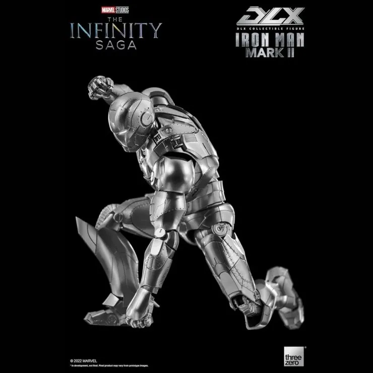 ThreeZero and Marvel Studios proudly present the DLX Iron Man Mark 2, a stunning addition to the Marvel DLX series. This figure represents Tony Stark’s very first Iron Man armor, the prototype built at Stark Industries. Its metallic silver finish, applied with a multi-layer metallic coating process, faithfully replicates the sleek design and engineering brilliance seen on the big screen. Fans and collectors can now own a piece of Iron Man history in miniature form.
