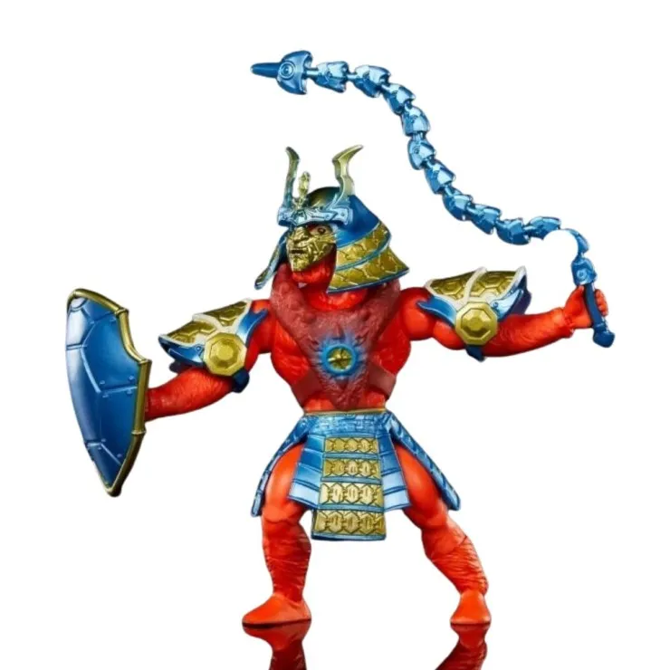 | Brand | Master Of The Universe | Type | Action Figure | Features | 5.5-inch tall figure, 16 moveable joints, Samurai armor, bladed whip, shield, mini-comic, collectible packaging, model no HTH11. | Material | Plastic | Item model number | HTH11 | Manufacturer recommended age | 6 years and up | Product Dimensions | 4 x 10 x 15 cm; 130.18 g | Color | Multi Colors | Package Include | 1X Mattel Turtles of Grayskull Beast Man Action Figure |