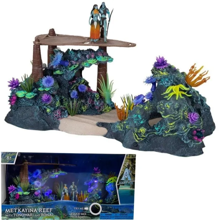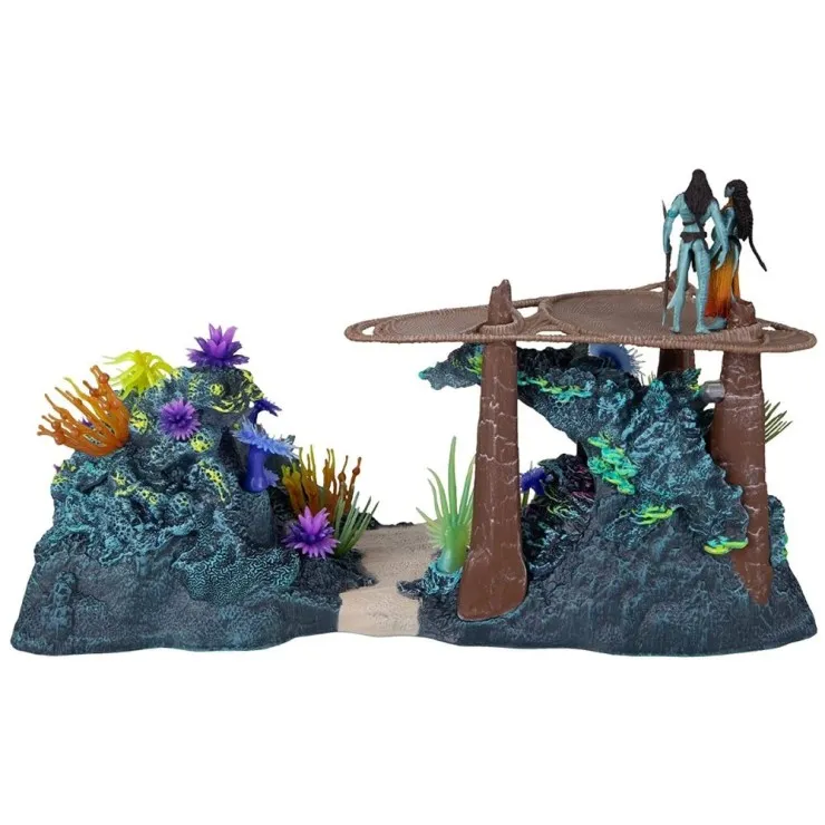 The McFarlane Toys Avatar: The Way of Water The Metkayina Reef playset is a World of Pandora deluxe set containing a detailed reef village environment, ocean-themed scenery, and two iconic Metkayina leaders, Ronal and Tonowari. It is a premium movie action figure set considered for display, dioramas, and immersive storytelling.