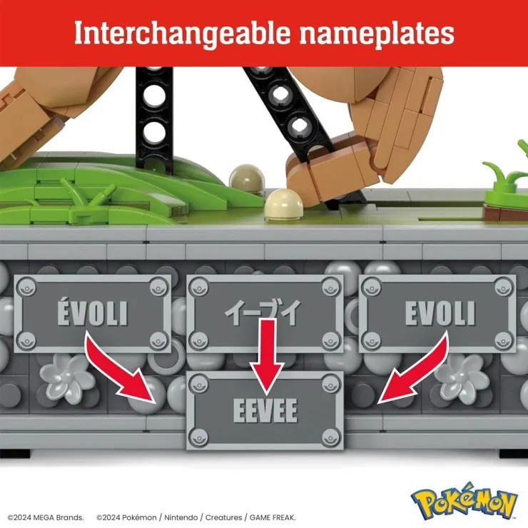 Pokémon Motion Eevee Toy Kit HTH71 Every piece is crafted from high-quality plastic, ensuring a snug and durable fit. MEGA’s expert attention to detail perfectly replicates Eevee’s in-game anime-inspired look, from its big expressive eyes to its fluffy tail. The set includes a detailed rocky environment base, adding depth and realism to your display. It also comes with interchangeable nameplates in multiple languages, making it an excellent showcase piece for collectors around the world.