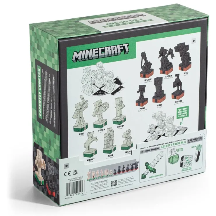 | Brand | The Noble Collection | Type | Chess Set | Features | Official Minecraft chess set with 18" board, 32 themed pieces, interlocking design, and collectible style for ages 8+. | Material | Plastic | Theme | chess | Genre | Educational, Family, Strategy | Number of players | 2 | Recommended Age | 8+ Years |