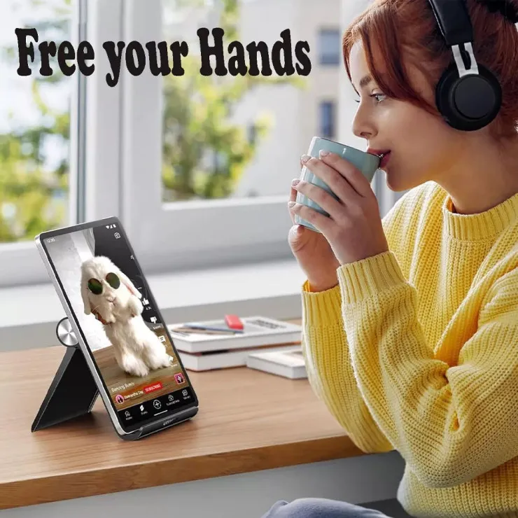 Enhance your mobile setup with our portable folding stand, designed for seamless integration into your daily life. From bedside tables to office desks, this stand provides stable support for hands-free operation. Its lightweight and foldable design make it an essential companion for travelers and homebodies alike, ensuring you always have a reliable way to prop up your smartphone or tablet.