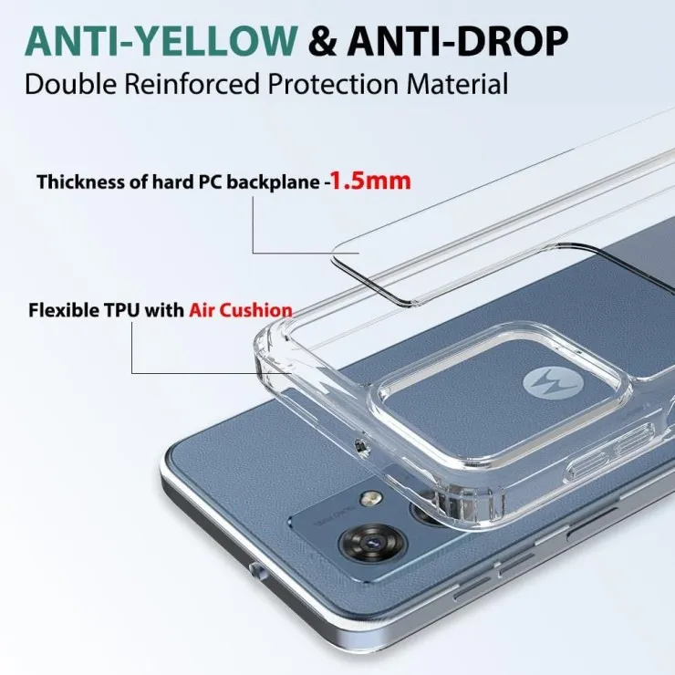 | Compatible Brand | Motorola | Compatible Model | Moto G54 | Features | Anti-Shock, Wireless Compatible, Transparent look, Anti-Yellowing, Drop Off Protection | Material | Silicon | Type | Case Cover | Pattern | Solid | Warrenty | 30 days | Package included | 1 X Clear Case |