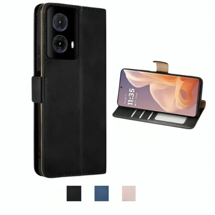 This leather wallet case is precision-engineered to fit the Motorola Moto G85 snugly, offering comprehensive protection without hindering access to any essential feature. The case aligns perfectly with all ports, buttons, and cameras, ensuring effortless usability while securely holding your phone in place.