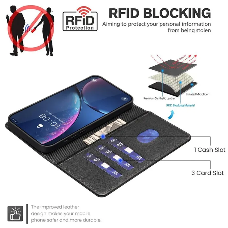 The built-in magnetic flap keeps the case securely closed, protecting your phone’s screen and valuables inside the wallet from accidental drops or scratches. This magnetic closure balances strong security with easy access when needed.
