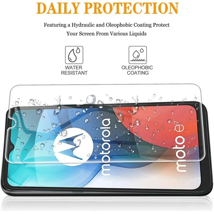 | Compatible Brand | For Motorola | Compatible Model | Motorola Moto E7 | Type | Screen Protector | Features | Anti-Scratch, Anti-Shatter, Full Coverage, Tempered Glass, Oleophobic Coating, Rounded Edges, Slim Glass, Surface Hardness: 9H, Ultimate Touch Sensitivity, Whole Transparency | Material | Tempered Glass | Color | Ultra Clear | Manufacturer Warranty | 30 days | Package Include | 2xScreen Protector |