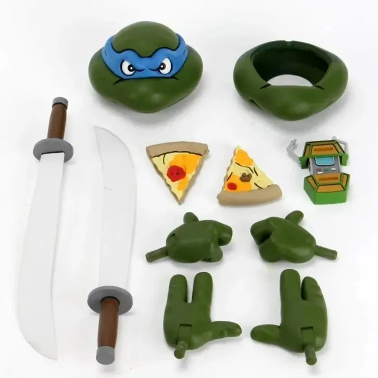 One of the extraordinary features of this figure is its four interchangeable bottom faceplates and top, allowing you to match and mix expressions to suit Leonardo’s mood from serious and focused to fun and lighthearted. These faceplates are also interchangeable across all four Turtles in NECA’s Giant Size line, giving you endless customization possibilities.