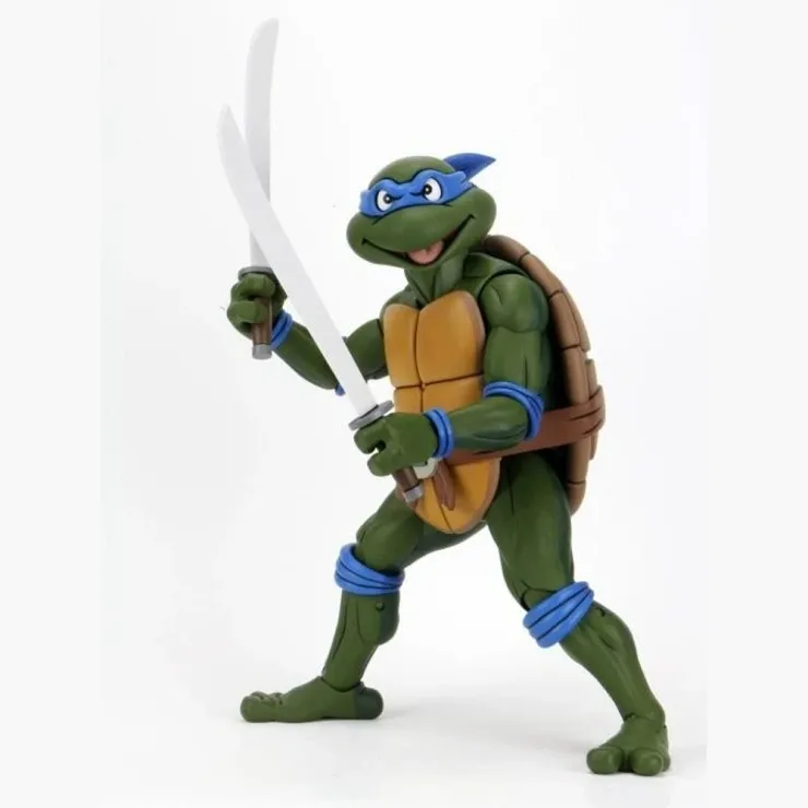 | Brand | NECA | Character | Leonardo | Type | Action Figure | Features | 15-inch tall figure, 30 articulation points, interchangeable faces, katanas, extra hands, pizza slices, and Turtle Communicator – Model No: 54143. | Material | Plastic | Colour | Green | Item model number | 54143 | Manufacturer recommended age | 17 years and up | Product Dimensions | 45.47 x 28.45 x 19.3 cm; 1.5 kg | Package Include | 1X NECA TMNT 1987 Cartoon Leonardo Figure |