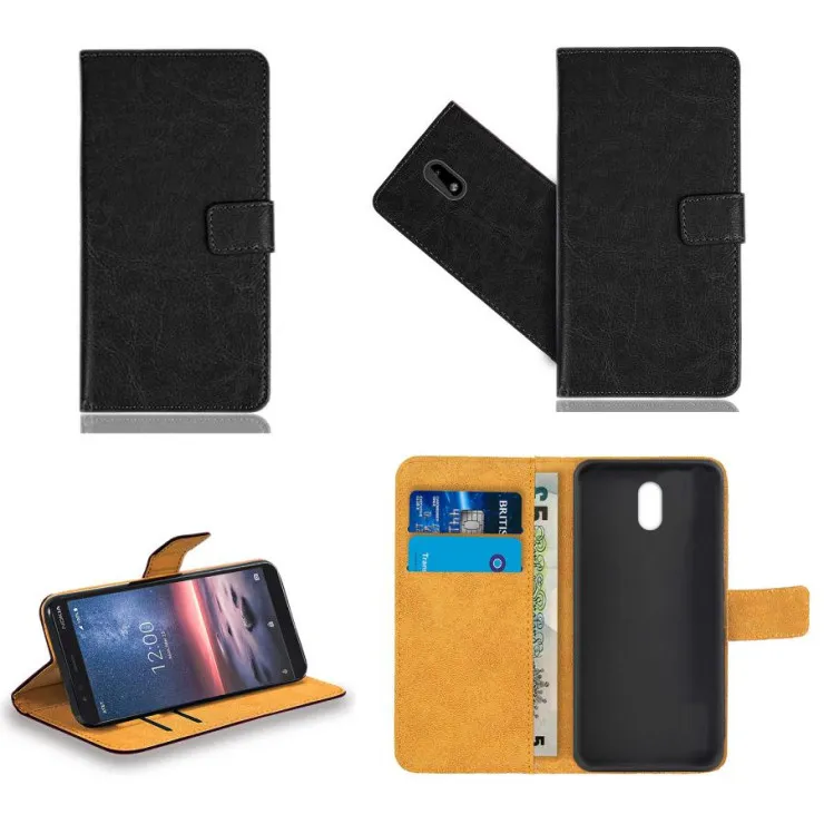 Shockproof PU Leather Flip Wallet Case for Nokia 3.1 – Book Style (2018, Black)