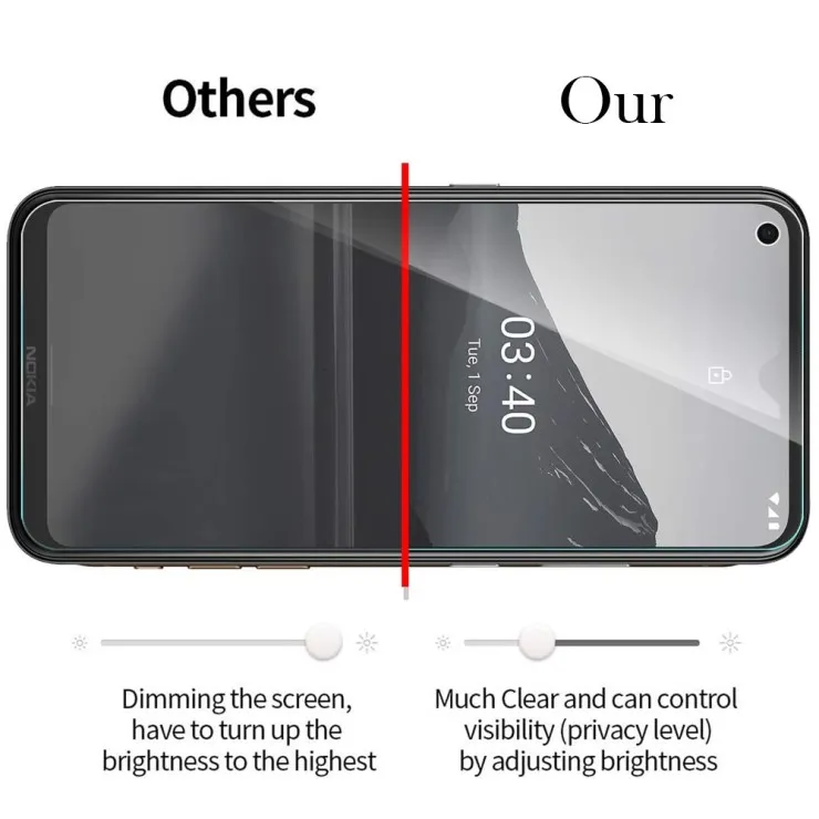 Keep your Nokia 3.4 screen protected and your content private with this premium 2-pack of privacy tempered glass screen protectors. Designed for those who value confidentiality, the built-in anti-spy layer ensures your screen remains visible only to you while appearing dark and unreadable from side angles. Ideal for daily commutes, meetings, or using your phone in public spaces.