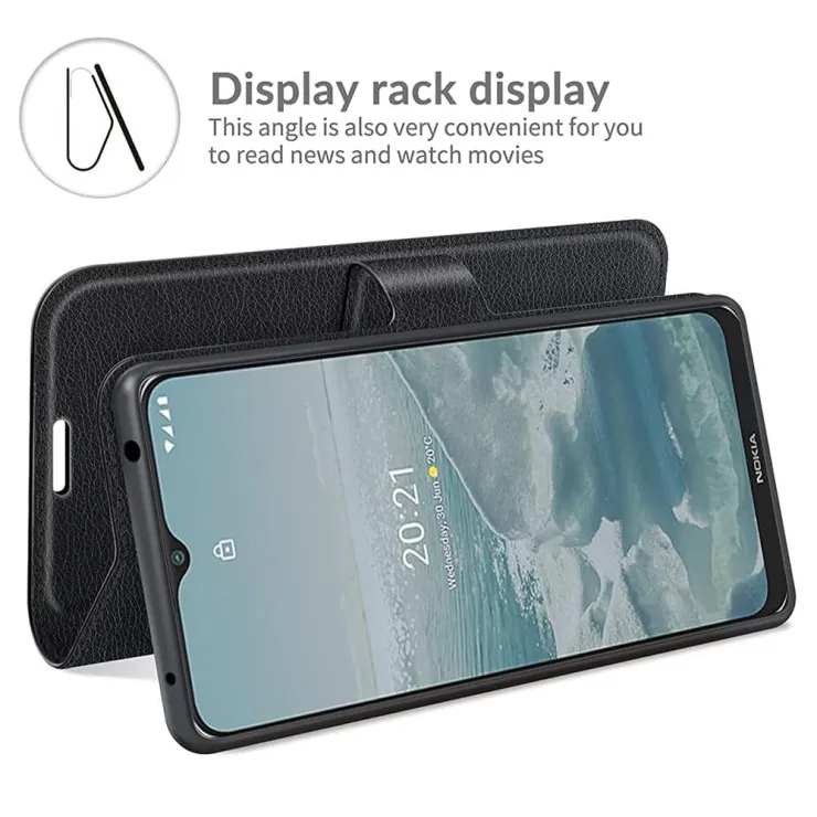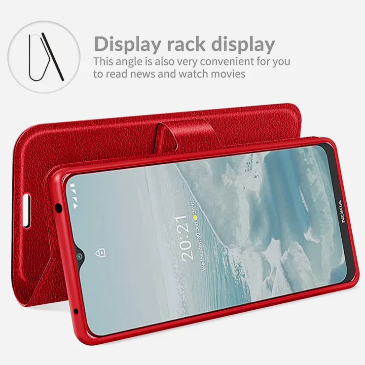 Constructed from high-quality PU leather, the case boasts a smooth, refined finish that complements the Nokia G20’s sleek profile. The textured surface not only looks sophisticated but also resists fingerprints and minor scratches, maintaining a polished appearance through daily use.