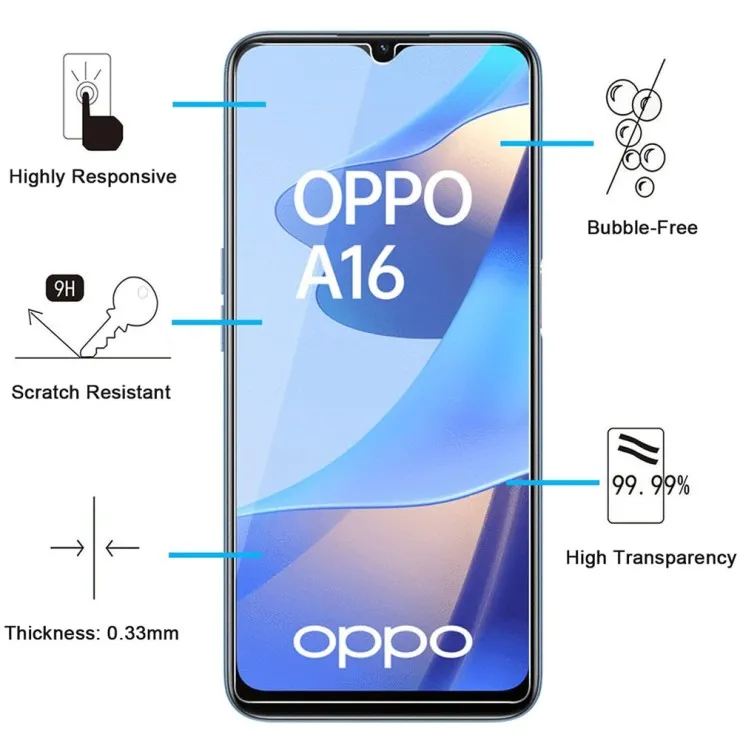 Each screen protector is made from high-quality tempered glass with 9H hardness rating, providing a tough barrier against scratches, scuffs, and impacts. This durable layer helps prevent damage from everyday hazards such as keys, coins, or accidental drops, keeping your Oppo A16’s screen intact and pristine. The shatterproof design also ensures that if the glass does break, it fragments safely without sharp edges.