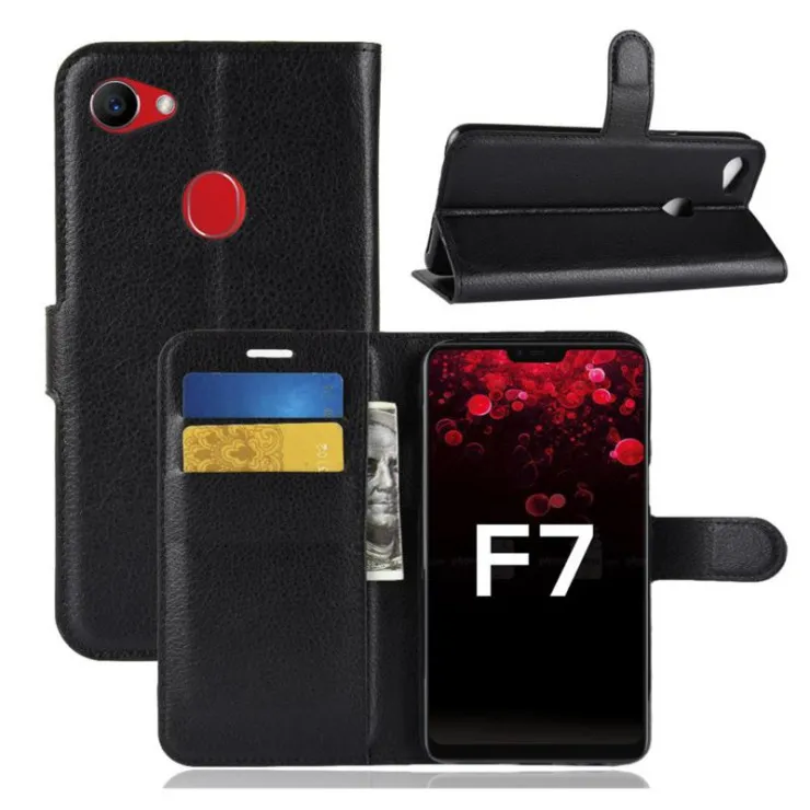 Introducing the Ultimate Protection and Style for Your Oppo F7 (2018) - Black Magnetic Closure Wallet Case!