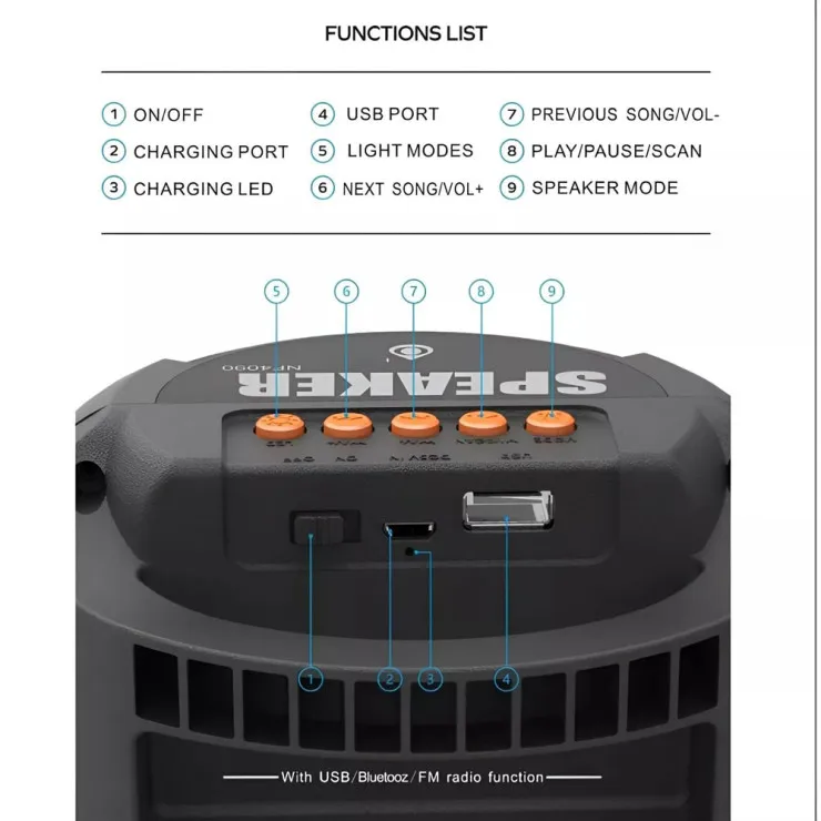 LED lights are vibrant and the speaker is very portable. Great buy for the price.
