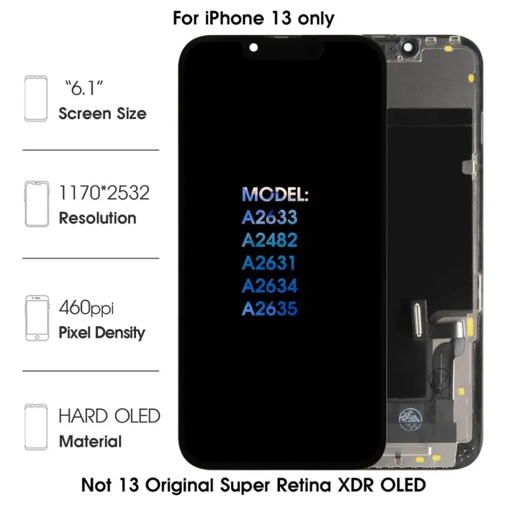 This display assembly is engineered specifically for the iPhone 13 (6.1-inch model). It features the correct connector layout, frame dimensions, and Face ID support—ensuring a seamless fit and smooth integration with the phone’s internal components. There’s no need to worry about compatibility issues, as it has been carefully developed to replace the original screen with precision and reliability.
