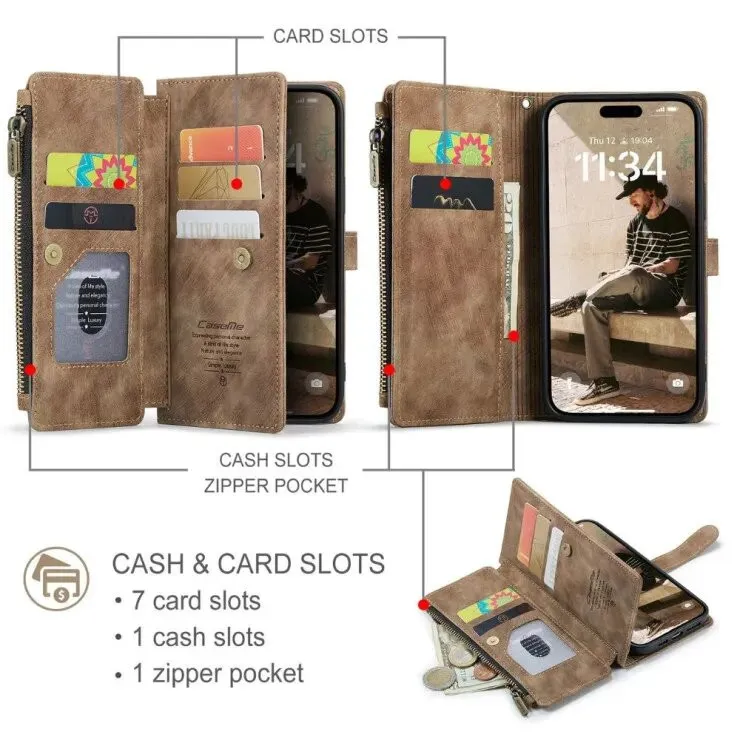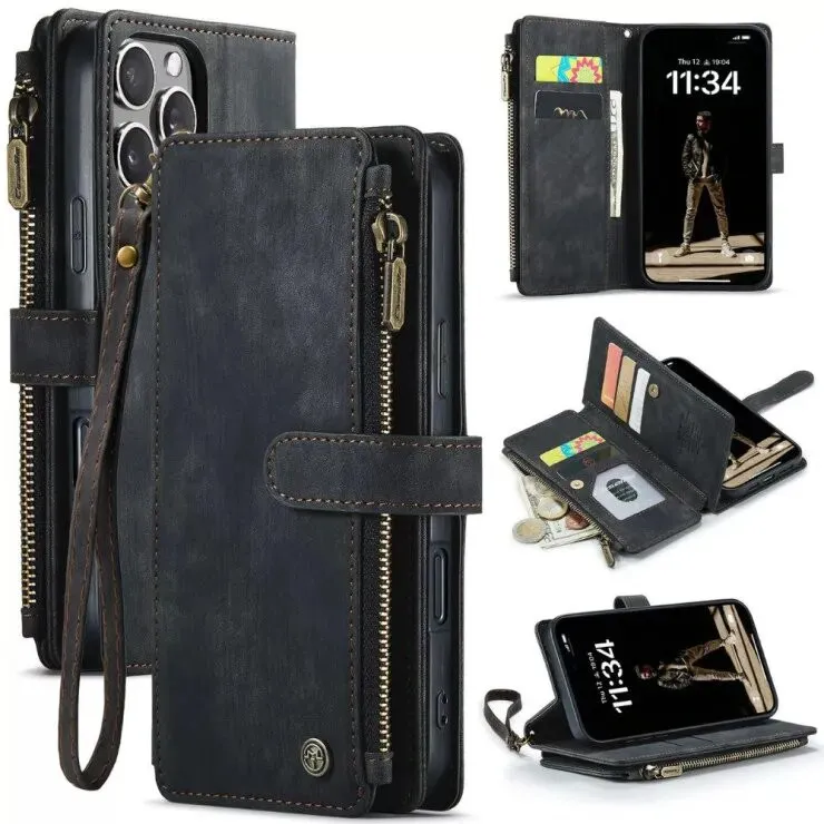| Compatible Brand | Apple | Compatible Model | iPhone 14 14 Plus, 14 Pro, 14 Pro Max | Features | Soft vintage PU leather exterior, flexible Silicon interior, protects against drops and scratches, 7 card slots and 1 cash slot, built-in viewing stand, strong magnetic clasp, easy access to all ports and buttons. | Material | Premium Leather | Type | Wallet Case | Color | Black, Red, Green, Brown | Warranty | 30 days | Package included | 1 X Zipper Wallet Case |