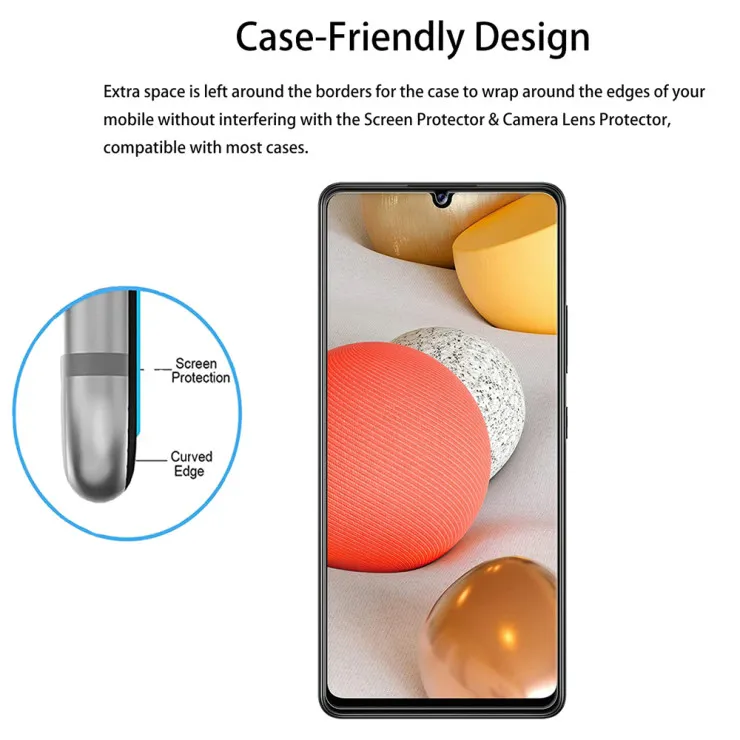 This screen protector’s 2.5D curved edge fits the Samsung A42 5G’s screen and is made of high-quality tempered glass. This provides complete protection from scratches, cracks, and other damage.