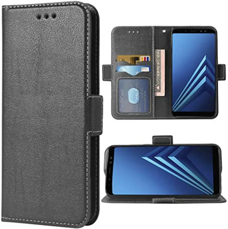 | Compatible Models | Samsung Galaxy A8/A5 (2018) | Features | Adjustable Angle, Anti-Fingerprint, Anti-Scratch, Card Pocket, Lightweight, Shockproof. | Dimensions | 149.2 x 70.6 x 8.4 mm (5.87 x 2.78 x 0.33 in) | Item Weight | 80g | Colors | Black | Package Includes | 1x Leather Case |