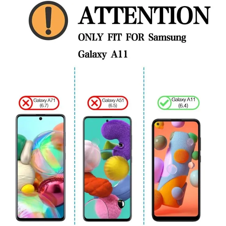 This screen protector is custom-cut for the Samsung Galaxy A11, offering full front coverage while leaving enough space for your phone case to fit comfortably. With 2.5D rounded edges and precise cutouts for the front camera and sensors, it fits seamlessly and stays securely in place—no lifting, peeling, or interfering with daily use.