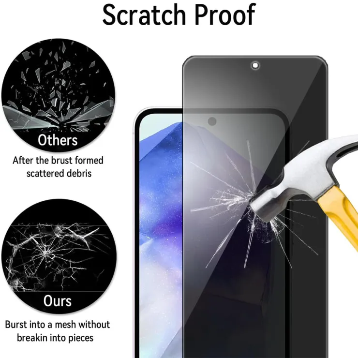 Protect your sensitive information from unwanted eyes with this expertly crafted Privacy Screen Protector for the Samsung Galaxy A55. Designed to provide superior screen defense while preserving your personal privacy, this tempered glass film features advanced anti-spy technology that limits viewing angles so only you can clearly see your screen. Whether you're commuting, working in public spaces, or browsing on the go, this screen protector ensures your content remains for your eyes only.
