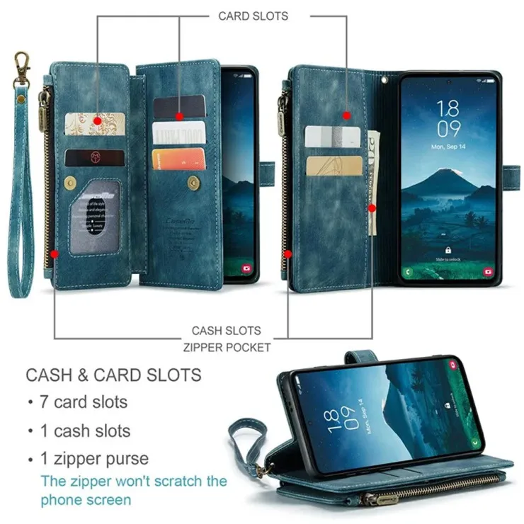| Compatible Brand | For Samsung | Compatible Model | Samsung Galaxy S24 | Type | Zipper Leather Wallet Case | Feacture | Soft vintage PU leather exterior, flexible Silicon interior, protects against drops and scratches, 7 card slots and 1 cash slot, built-in viewing stand, strong magnetic clasp, easy access to all ports and buttons | Matrial | Leather | Color | Green | Manufacturer Warranty | 60 Days | Package Include | 1x Zipper Leather Wallet Case |