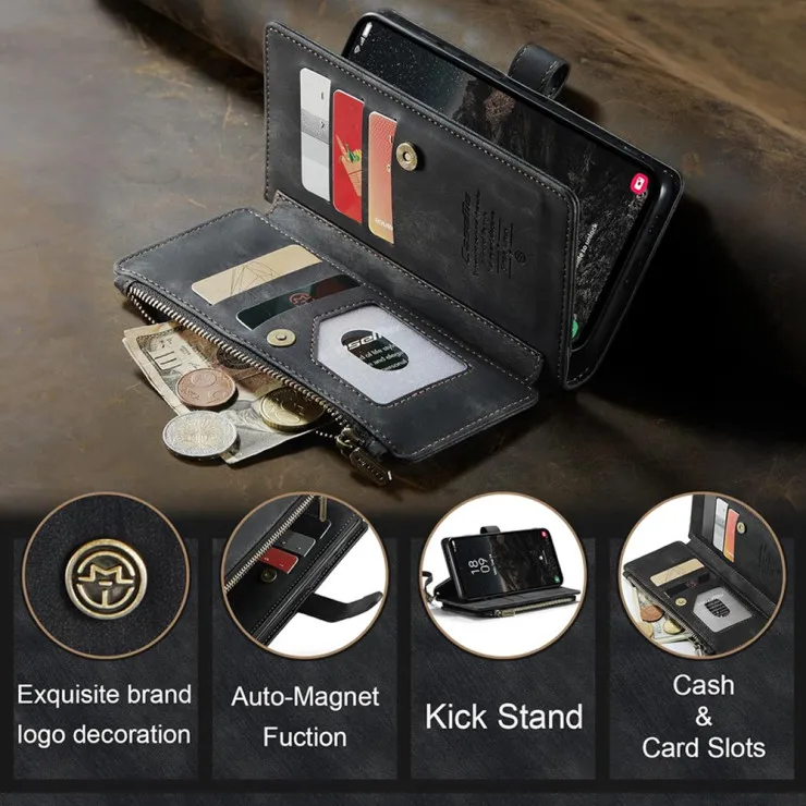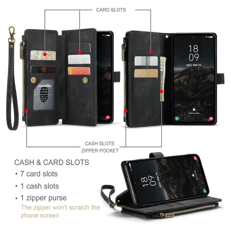 | Compatible Brand | For Samsung | Compatible Model | Samsung Galxy S24 | Type | Zippper Leather Wallet Case | Features | Soft vintage PU leather exterior, flexible Silicon interior, protects against drops and scratches, 7 card slots and 1 cash slot, built-in viewing stand, strong magnetic clasp, easy access to all ports and buttons. | Material | Leather | Colrors | Black | Manufacturer Warranty | 60 Days | Package Include | 1x Zippper Leather Wallet Case |