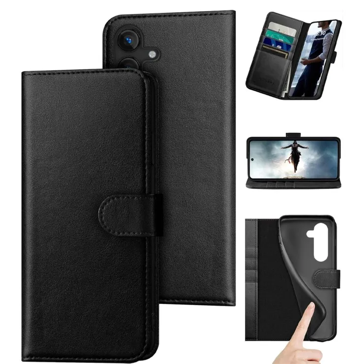 Premium Black Leather Wallet Case for Samsung Galaxy S25 FE Protective Flip Cover
