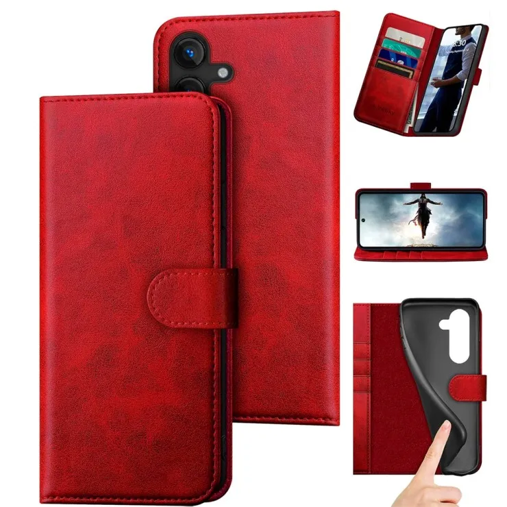 Samsung Galaxy S26 Stylish Red Leather Wallet Case for Phone