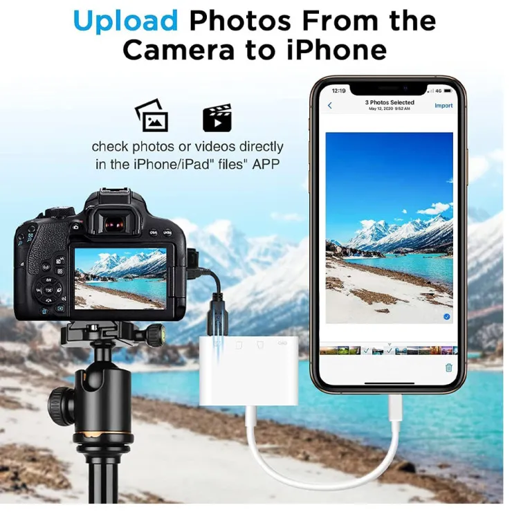 Its compact and lightweight design makes this adapter an essential travel companion. Whether you're on vacation, in the field capturing content, or attending business meetings, it allows you to offload and manage media files instantly without needing a computer. Save space on your device by transferring files straight from the card to your iPhone or iPad, or quickly share them on social media or with clients.