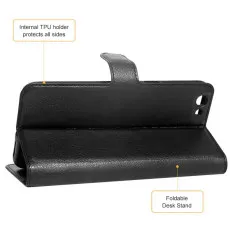 Elegant Black Oppo Neo 7 (2015) Wallet Case with Stand and Card Slot