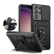 Samsung S23 Ring Case with Slide Camera Cover Heavy Duty Shockproof Protective Case Cover-Black