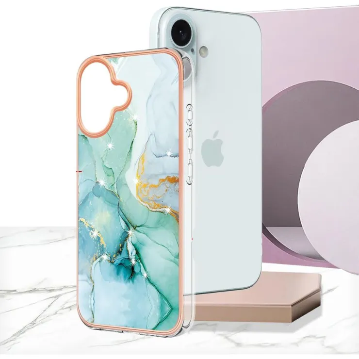 Slim marble green TPU case for iPhone 16. Shockproof, stylish, and durable protection!