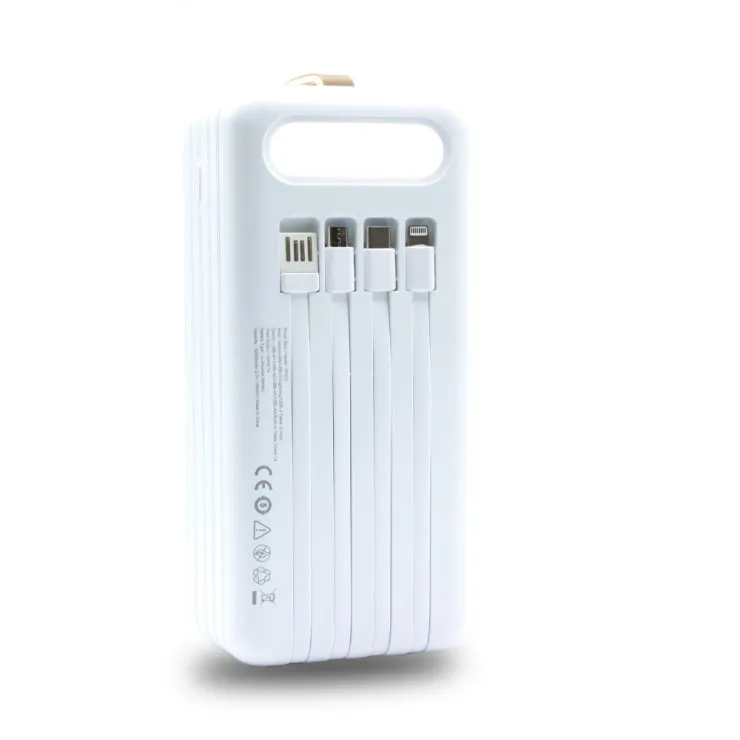 | Compatible Models | Universal | Compatible Brand | Universal, For Apple iPhone , For Samsung, | Features | Digital display, Fast Charge, USB/Micro USB/Type C/for Apple Cable, LED Flashlight, 4 cables, LED display, Built in Cables, Digital display, Charger & Battery in 1, 8000mah Battery | Type | Power Bank | Package Includes | 1x Power Bank White | Material | ABS Plastic | Color | Black | Connectivity | Dual USB, Lightning, Micro-USB, USB-C |