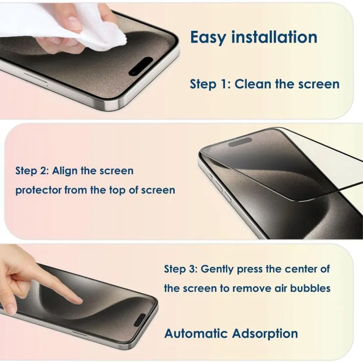 Unlike standard flat glass, this 10D screen protector features curved edges that contour perfectly to the shape of your iPhone 15 Plus. It provides seamless edge-to-edge protection, eliminating any gaps where dust or dirt can accumulate. The snug fit also helps prevent edge lifting and maintains long-lasting adhesion.