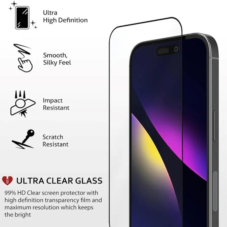 Enjoy crystal-clear display clarity with 99.9% high-transparency glass. The protector preserves your iPhone’s vivid colours, sharp resolution, and brightness without any loss of quality. Face ID, front camera, and ambient light sensors work flawlessly—offering full functionality with no interference.