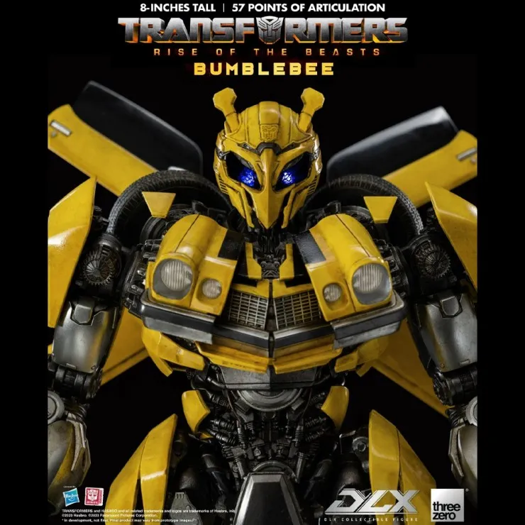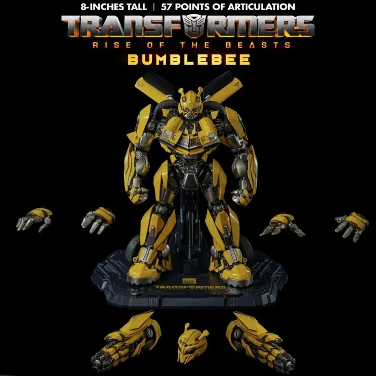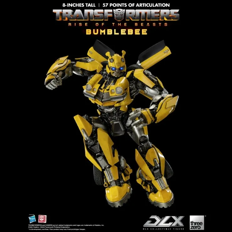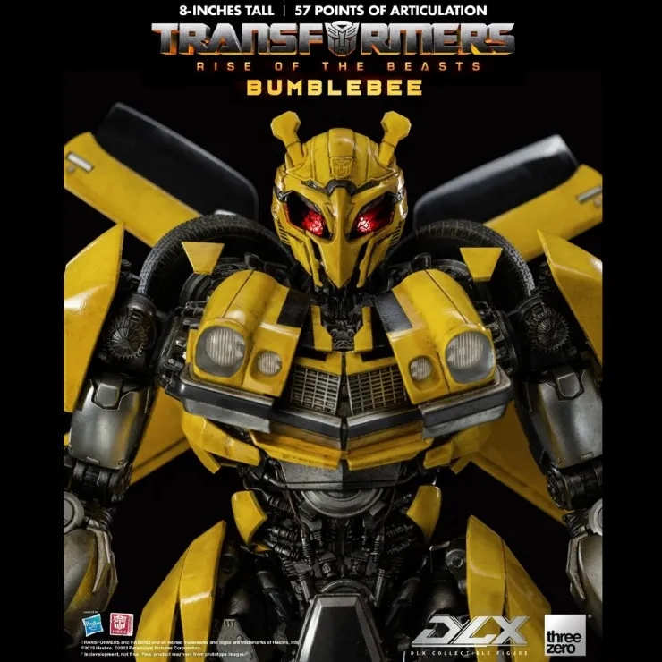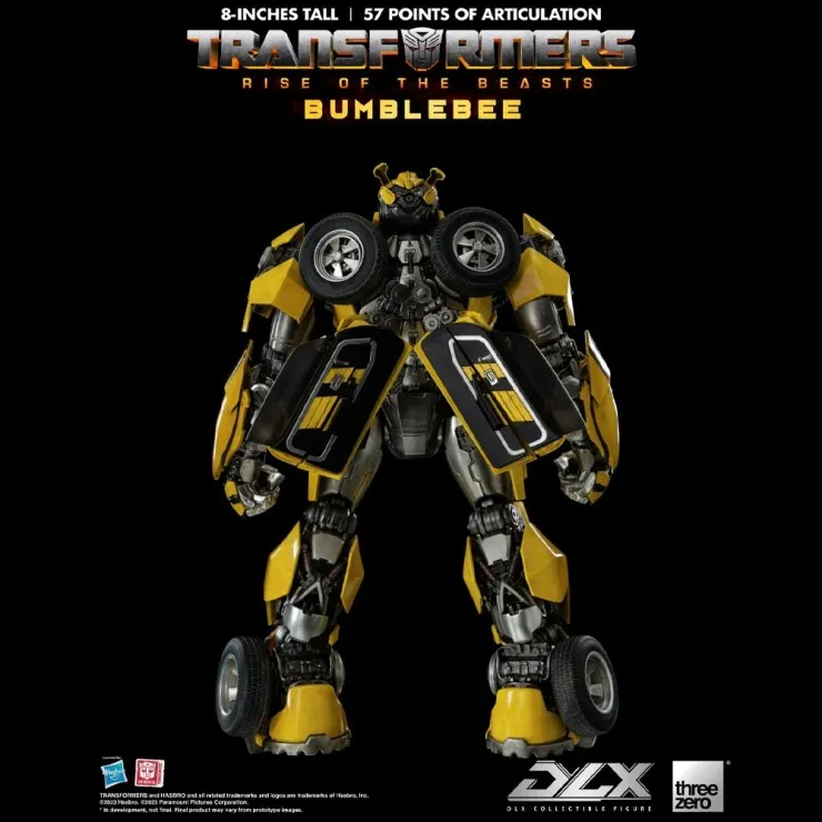 The ThreeZero DLX Bumblebee stands approximately 8 inches tall as a Bumblebee figure and features exceptional craftsmanship from the renowned Three Zero studio. This ThreeZero Transformers figure includes a highly detailed body with a weathered paint finish, giving the model a realistic battle-ready look inspired by the film.